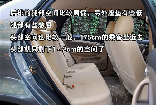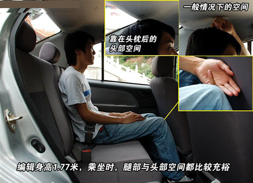 后排座椅空間就很難讓人滿意了:身高一米七五以上的人必須有腿頂前排座的覺悟,而且為了保證頭不接觸車頂,必須保持一個(gè)蜷縮的姿態(tài);而且座椅的靠背角度過于平直,長(zhǎng)時(shí)間乘坐會(huì)很快疲勞。