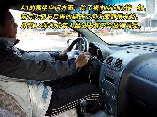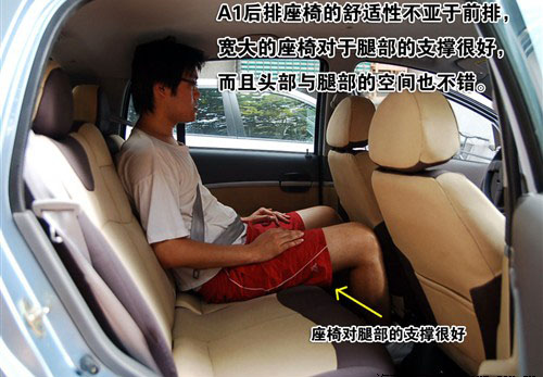 A1的乘坐空間表現(xiàn)在同級(jí)車中屬于不錯(cuò)的了:身高一米八五的人坐入進(jìn)去,頭部與腿部都能保證有一定活動(dòng)空間,并沒有十分壓抑的感覺。而且座椅很舒適,其腰部包裹與腿部支撐都很值得稱贊,頗有運(yùn)動(dòng)感。