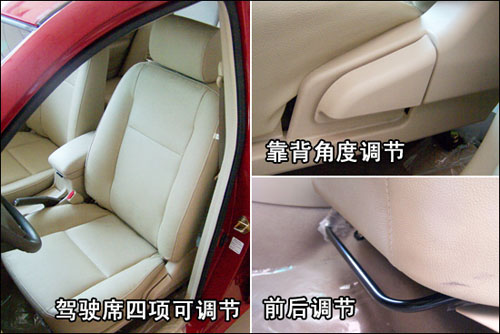 駕駛員座椅為4向手動(dòng)調(diào)節(jié)?勘辰嵌日{(diào)節(jié)為拉桿式,調(diào)節(jié)方便。駕駛員座椅沒(méi)有設(shè)計(jì)腰部支撐,頭枕高低可調(diào)節(jié)。無(wú)側(cè)安全氣囊。