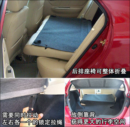 比亞迪F3R自動(dòng)擋版的后排座椅不可6/4分離折疊放到,僅可以整體折疊。放到過(guò)程比較簡(jiǎn)單,放到后行李空間更可大幅提升。