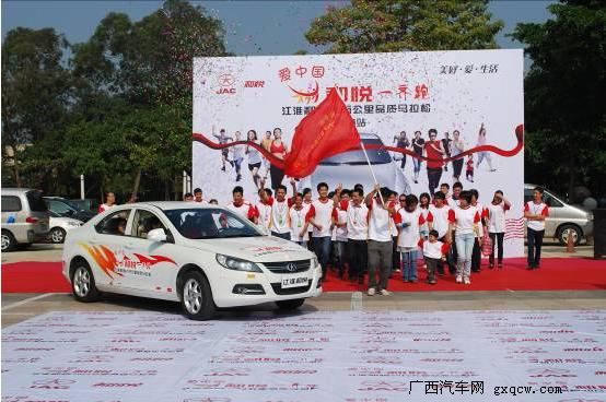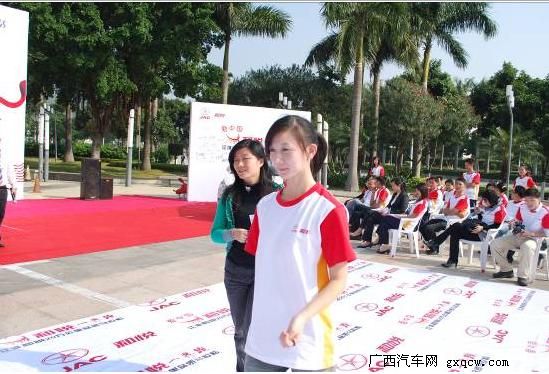 隊員給品鑒家受旗,這代表了江淮20萬公里品質(zhì)測試的公開公正的精神。