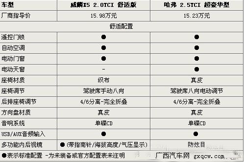 在舒適配置,無(wú)疑哈弗更勝一籌,在擁有了遙控門鎖、自動(dòng)空調(diào)、電動(dòng)門窗、單碟CD的基礎(chǔ)上,還有配置有電動(dòng)天窗、真皮電動(dòng)調(diào)節(jié)座椅等舒適配置,而威麟X5的內(nèi)飾后視鏡比較特別了配有指南針、海拔高度、氣壓顯示等信息顯示。