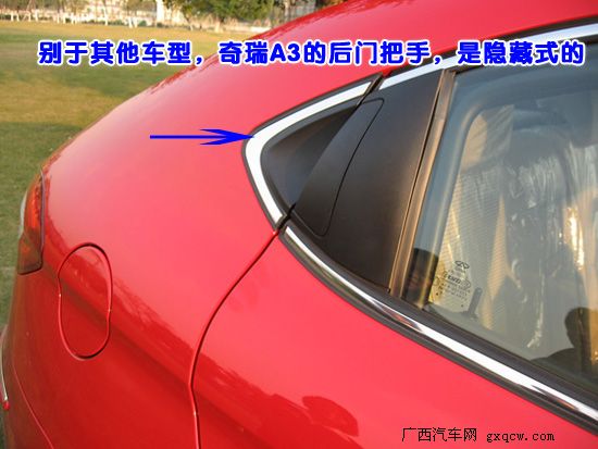 奇瑞A3 2010款,還增加了阿爾法羅密歐的隱形式后門把手、全系標(biāo)配鋁圈的205/55 R16寬胎等,處處洋溢著名師背景以及奇瑞的厚道。在車身側(cè)面、前大燈下和尾部、車窗的部分,2010款增加了鍍鉻亮條裝飾,通過光影效果的作用后,使得新款車型的車身比例看上去更為和諧。