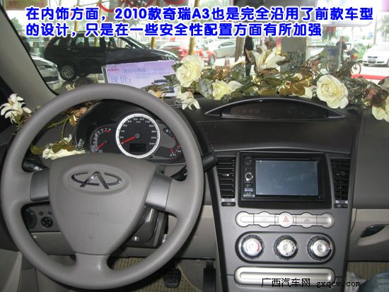 作為國內(nèi)中級家轎市場中的品質(zhì)先鋒,奇瑞A3以“5E4W”(“5”-通過碰撞測試5星安全評定;“E” ESP防側(cè)滑穩(wěn)定系統(tǒng);“4”- 4連桿后獨立懸架;“W”-寬體車身時尚動感)四大核心優(yōu)勢獲得了廣大消費者的喜愛。奇瑞A3 2010款本著精益求精的態(tài)度,在安全、舒適、外觀上進(jìn)行了全面升級: