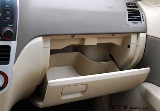 風云2的儲物空間有進步也有遺憾,它在后門和后排一共設計了三個杯座,但是前排就沒有可以放置水杯的位置。前排兩側車門上的空間都沒有得到很好的應用,能放置的物品尺寸有限,中控臺頂端有帶蓋的儲物格,可以放置一些容易損壞的小物品。帶阻尼的手套箱容積不小,值得贊一下。