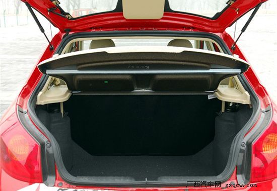 掀背式后備箱設計使得風云2的空間拓展非?捎^,同時后排座椅也可以完全放平,但是后備箱較高的開口下沿讓用戶在搬運一些較大較重的物品時變得不便。