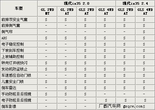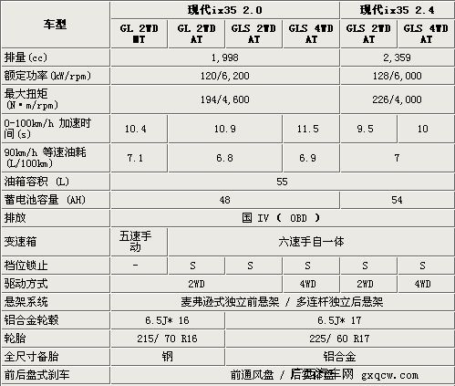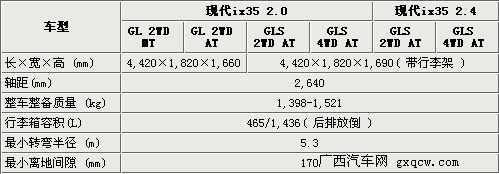 性能強悍,寬大舒適的大型SUV,一直是具有獨特品位喜歡運動且資金富裕消費者的最愛。北京現(xiàn)代旗下的全新SUV車型ix35,就是一款運動性能十分出眾的一款SUV車型。該車于去年廣州車展正式亮相,同時ix35也憑借動感的外觀受到了國內(nèi)消費者的關(guān)注。近日我們從北京現(xiàn)代官方獲悉到,現(xiàn)代ix35將于4月8日正式上市,同時我們也在第一時間內(nèi)從北京現(xiàn)代內(nèi)部人士處得到了ix35的詳細參數(shù)和配置。現(xiàn)代ix35將分為2.0和2.4兩種排量,共計6款車型。