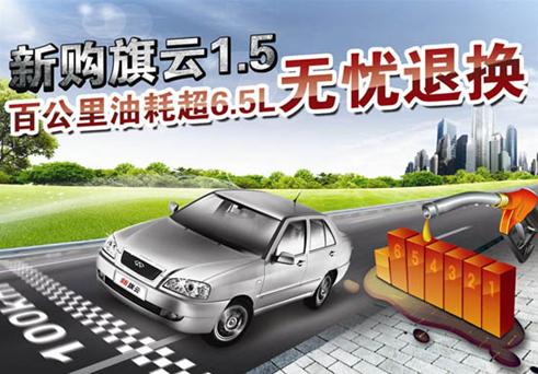 即日起,鑫廣奇瑞4S店推出購車承諾:“凡新購旗云1.5L的用戶,在正常行駛情況下百公里油耗若超過6.5L,且符合退換條件的(車輛未上牌、未購買商業(yè)保險(xiǎn)、車輛未受到損壞),7日內(nèi)無憂退換”。