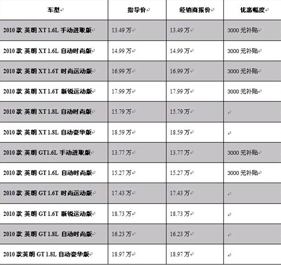 別克英朗XT是節(jié)能惠民政策的最大亮點,不僅1.6L和1.6T車型雙雙全系入圍,而且也可以說是二批節(jié)能惠民車型中個性最鮮明、最吸引眼球的車型。本來,“轎跑”、“運動”、“性能”,這些詞是不容易與“低碳”、“環(huán)!甭(lián)系在一起的,但是先進的1.6T渦輪增壓發(fā)動機和優(yōu)異的設計調(diào)校實現(xiàn)了動力操控與環(huán)保的完美結合,開辟了個性化高性能環(huán)保轎跑車的新領域。以五門轎跑的設計和“小鋼炮”式的運動性能在市場上獨樹一幟的英朗XT 上市六個多月累計銷量已經(jīng)超過25000輛,目前市場上沒有優(yōu)惠,此次享受3000元補貼,能擁有最個性潮流的愛車,還等什么呢!