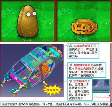 大家都有經(jīng)驗,一般每關(guān)中必造的就是堅果墻了,再配以南瓜頭,能夠抵御絕大部分僵尸的攻擊。那么這樣的第一層保護聯(lián)想到車上的話,就非車身莫屬了,準確來說是車身結(jié)構(gòu)與包裹的鋼板。車身結(jié)構(gòu)就像堅果墻,是基礎(chǔ),鋼板包裹是強化,并使外界的侵入得以緩沖。