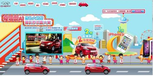 奇瑞新A1搖搖樂活動,從9月8日開始一直持續(xù)到10月20日,消費(fèi)者在活動期間登陸活動網(wǎng)站,填寫個人信息后即可參加線上排隊(duì)。在線上4S店前,每個排隊(duì)的消費(fèi)者都將獲得一個專屬的隊(duì)列號,系統(tǒng)會自動抽獎,獎品包括中國移動充值卡、A1車模,更有新A1兩年使用權(quán)的終極大獎。輕點(diǎn)鼠標(biāo)就可參與,每天數(shù)十個中獎機(jī)會,奇瑞新A1搖搖樂活動無疑將成為網(wǎng)絡(luò)活動的新熱點(diǎn)。