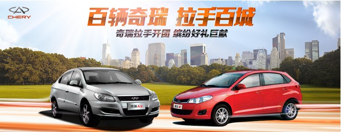 自10月20日起,奇瑞汽車正式聯(lián)合拉手網(wǎng),強(qiáng)勢推出“百輛奇瑞 拉手百城”奇瑞風(fēng)云2/A3網(wǎng)絡(luò)搶購活動(dòng)。百輛奇瑞風(fēng)云2及A3全力出擊,盛大購車團(tuán)火爆開營。6折超低優(yōu)惠史無前例!每周開團(tuán),車輛逐周遞增,圣誕及元旦前更有盛大驚喜,數(shù)量有限,搶完即止!