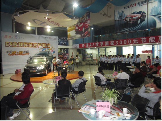 廣西鑫廣達奇瑞公司在11月26日為E5新老客戶舉行了一場“E5金秋品鑒之旅暨客戶聯(lián)誼”活動。活動中鑫廣達公司領(lǐng)導(dǎo)親自為現(xiàn)場多位意向客戶公布了近期購買E5將獲得的各項優(yōu)惠政策。活動中精美的餐點、精彩的表演、獎品豐富的互動游戲以及抽獎環(huán)節(jié),讓廣大E5客戶食得開心、玩得開心、購得開心,同時多位車主在聯(lián)誼會上一同分享了駕乘E5帶來的的喜悅心得。