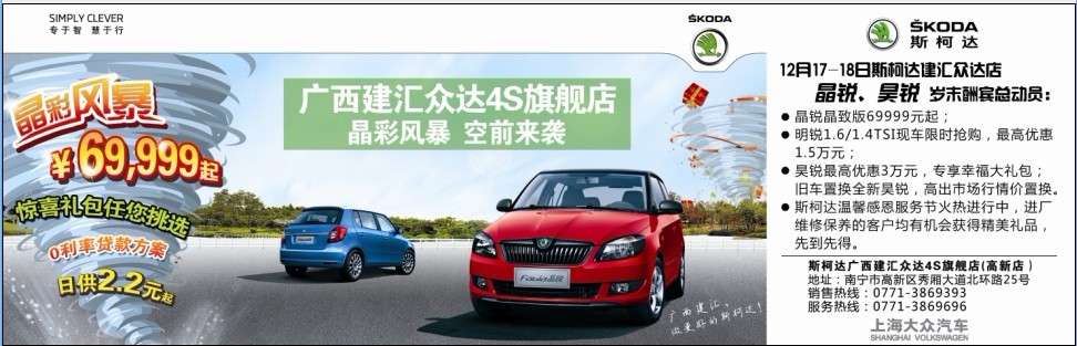 12月17-18日斯柯達(dá)建匯眾達(dá)店晶銳、昊銳歲末酬賓總動(dòng)員: