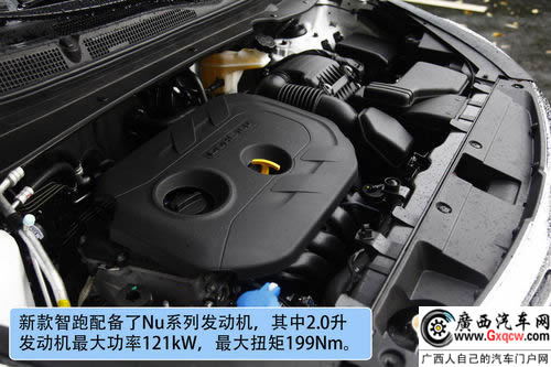 2012款智跑最大的改變是更換了型號為G4NA的2.0L發(fā)動機,其最大功率121kW,最大扭矩為196N·m(2011款為120kW,最大扭矩為194N.m)傳動方面,其2.0L車型用6速手動變速箱取代了老款的5速手動變速箱。而新款智跑的2.4L車型應(yīng)該還采用與現(xiàn)款相同的發(fā)動機。自動擋車型仍然是采用6速手自一體設(shè)計。