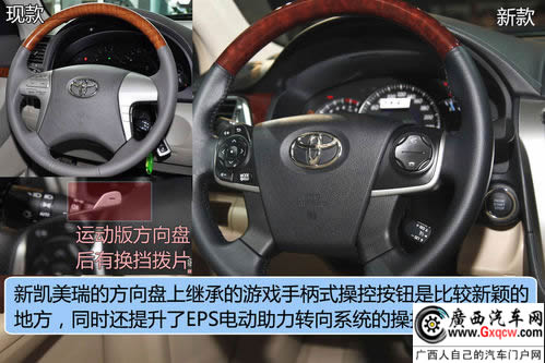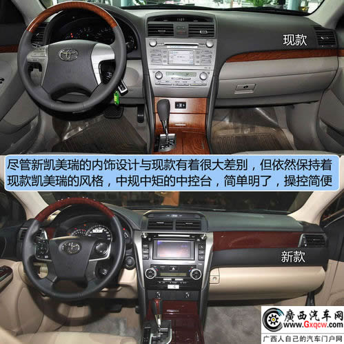 新凱美瑞在內(nèi)飾方面改動較大,設(shè)計布局、質(zhì)感方面比現(xiàn)款車型有了長足的進步。內(nèi)飾以豪華、典雅為設(shè)計思路,上深下淺的雙色內(nèi)飾顯得非常溫馨,中控臺、方向盤等區(qū)域運用了不少暗紅色桃木裝飾來烘托豪華氛圍,這種設(shè)計恰有雷克薩斯的風韻。