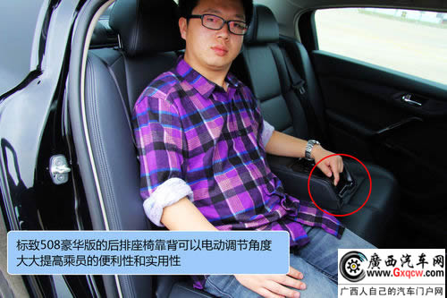 另外,508豪華版的后排座椅靠背可以電動(dòng)調(diào)節(jié)角度,大大提高乘員的便利性和實(shí)用性。后排的乘客還可以通過(guò)按鈕從后面調(diào)節(jié)副駕駛席座椅的前后幅度,以提高后排的腿部空間,這點(diǎn)與凱美瑞相同。