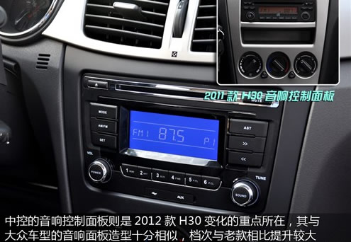 相比外觀而言,2012款H30內(nèi)飾的變化則要比外觀變化大許多,雖然整體樣式依舊,但細(xì)節(jié)上的變動(dòng)卻能帶來不一樣的使用體驗(yàn)感受。