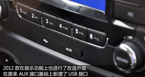 2012款中控部分的變化重點(diǎn)應(yīng)該就是這款音響控制面板的變化了,老款的控制面板較為簡單,缺乏檔次,而新款的音響板面則明顯要高檔許多,造型與大眾車型的款式十分相似,無論是按鍵精致度還是用料方面都比老款要提升不少。尊雅型上新增加了USB接口,頂配的電子導(dǎo)航版車型更配備了倒車影像功能,功能豐富了不少。