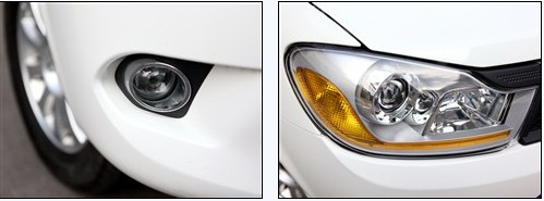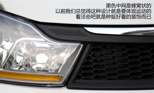黑色中網(wǎng)是蜂窩狀的,以前我們總覺得這種設(shè)計就是要體現(xiàn)運動的,其實看淡些吧,就是種裝飾而已,挺好看的。車燈的式樣時髦的很,就是造型看著眼熟也改變不了這第一印象,黃色的轉(zhuǎn)向燈向兩側(cè)挑起,給車頭帶來一絲活潑,近光燈則帶有透鏡,自主車在這些地方向來表現(xiàn)到位。