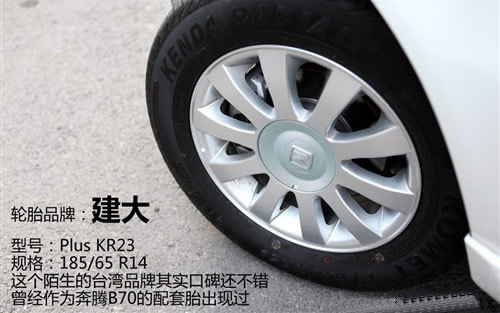 輪胎的規(guī)格為185/65 R14,14寸的鋁合金輪轂只有在這個配置以上的車型上才會配備,輪胎的尺寸則不是自主車上常見的佳通、萬力、三角和瑪吉斯等,而是很少見到的建大品牌,事實上這款臺灣品牌的輪胎口碑還不錯的,曾經(jīng)奔騰B70就有過一批采用建大輪胎的商品車。