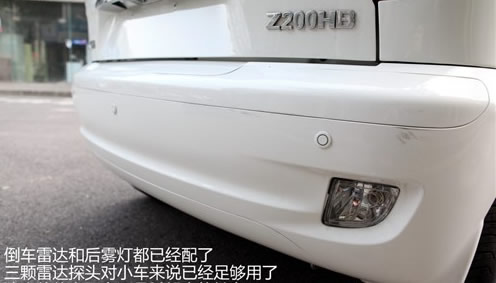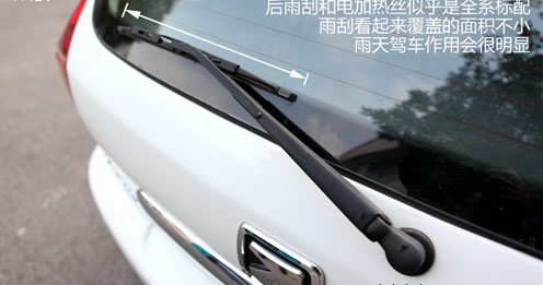 轉(zhuǎn)而來到車尾,原本我們覺得Z200HB的車尾線條應(yīng)該可以更圓滑一些,但是尾燈的造型還是有改善的余地。高位剎車燈被安置在小尾翼上,至于尾翼,裝飾作用更大一些。后雨刮和電加熱絲也全都有,似乎是全系標配,雨刮看起來覆蓋的面積不小,雨天駕車作用會很明顯。