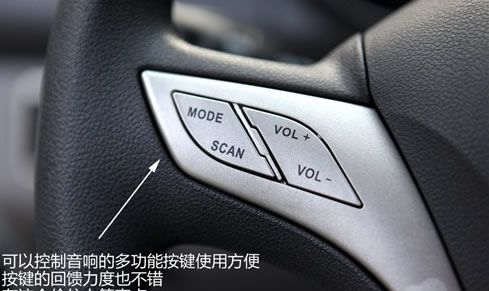 方向盤并非純圓,在接近底部的地方做了一點點改動,為的是增加一些時髦元素的點綴,就和卡羅拉改款后一樣。發(fā)泡材質(zhì)的方向盤手感一般,但可以控制音響的多功能按鍵使用起來很方便,按鍵的回饋力度也不錯。