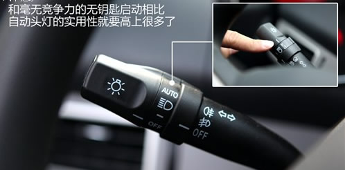 無鑰匙啟動就比較唬人了,照我來看還不如簡簡單單的遙控鑰匙,原因看圖便知。自動頭燈倒是很實用的配置,理性的消費者也更愿意把錢花在這兒。