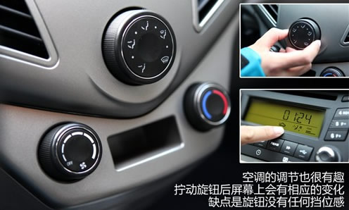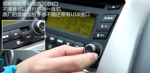 音響面板是標(biāo)準(zhǔn)的2DIN口,不滿意可以自行更換一體機,很方便。原廠的音響面板手感還不錯,還帶有USB接口,這更符合懶人的使用需求,比如我就很討厭刻盤?照{(diào)的調(diào)節(jié)也很有趣,擰動空調(diào)出風(fēng)口調(diào)節(jié)旋鈕后屏幕上會有相應(yīng)的變化,缺點是旋鈕沒有任何擋位感,行車過程中要調(diào)節(jié)到位完全靠意念和運氣……