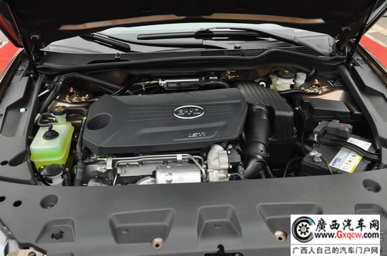 打開發(fā)動機蓋,你會驚訝的發(fā)現(xiàn),比亞迪G6的發(fā)動機蓋設(shè)計的十分平整精致,在密封性高度完整的擋板下方藏匿的是一臺1.5L汽油直噴渦輪增壓發(fā)動機,最大功率113kW,最大扭矩240Nm。