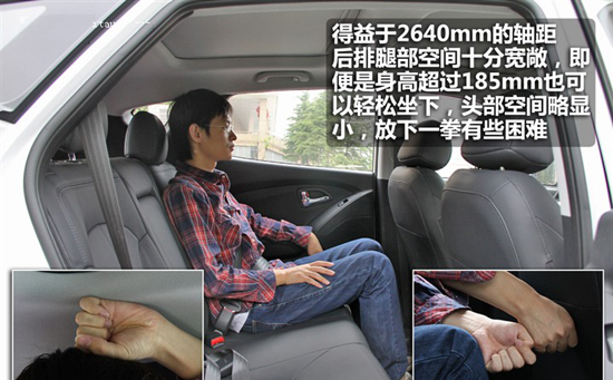 北京現(xiàn)代ix35整車尺寸為:4420/1820/1660(mm)、軸距為2640(mm),與同級競爭車型相比具有不錯(cuò)的表現(xiàn)。北京現(xiàn)代ix35前排坐姿較高,頭部和腿部空間很寬裕,2.0頂配車型座椅可以手動(dòng)調(diào)節(jié)高度、前后以及靠背角度,不過無法調(diào)節(jié)坐墊角度,因此可能有些人無法找到最適合的駕駛姿勢。