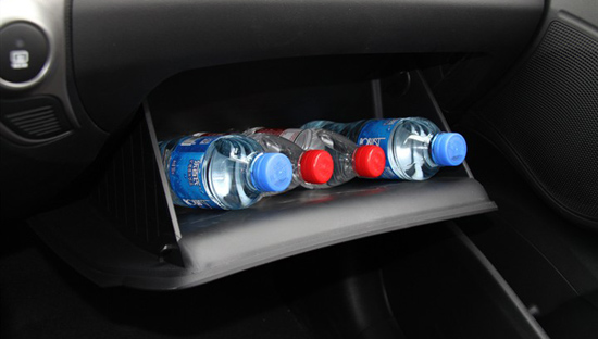 現(xiàn)代 ix35車內(nèi)的儲物格并不算多,但車內(nèi)所有儲物格都比較寬敞。中控臺下用的空間來放手機(jī)和錢包正合適,手套箱雖然不算大,但還算規(guī)整;扶手箱智能單層打開,不過超過25cm的深度還是很理想的。前后四個(gè)車門上都用用來放水瓶的位置,這是非常人性化的設(shè)計(jì),除此之外還能放一些小雜物。