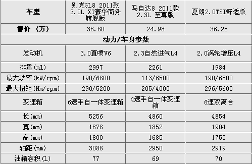 三款車(chē)型中從價(jià)格看性?xún)r(jià)比最高的是馬自達(dá)8,動(dòng)力系統(tǒng)在里面稍顯落后,但是作為MPV主要是舒適為主所以也夠用。軸距方面出于其他兩車(chē)中間。別克GL8的動(dòng)力系統(tǒng)在高級(jí)感方面更好,V6直噴發(fā)動(dòng)機(jī)在動(dòng)力儲(chǔ)備和平順性方面更好。軸距延續(xù)上代車(chē)型的強(qiáng)大,空間方面不用擔(dān)心。夏朗擁有強(qiáng)勁的動(dòng)力系統(tǒng),配備給MPV車(chē)型可以在行駛的時(shí)候給駕駛者更多的信心,在滿(mǎn)載或者超車(chē)時(shí)更加能體會(huì)到,軸距在三車(chē)中是最小的。