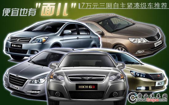 購車預(yù)算在7萬元,大多是事業(yè)剛剛起步或者剛剛為人父母的家庭用戶,因此可選的車型無非就是合資小型車或者自主緊湊級。但考慮到同價位的合資車型多為丁克一族最愛的兩廂小車。而中國消費者又惟獨偏愛大空間三廂,因此便宜也有"面兒"的自主品牌更符合我們的國情。今天我們就將為大家推薦5款7萬元左右的自主緊湊型車,看看他們的表現(xiàn)如何。