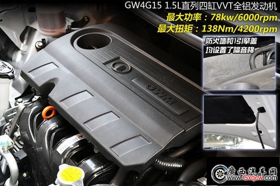 動力方面,2012款騰翼C30依然沿用了之前的GW4G15 1.5L直列四缸全鋁發(fā)動機,這款發(fā)動機具有VVT可變氣門正時技術(shù),最大功率78Kw/6000rpm,最大扭矩138Nm/4200rpm。雖然在數(shù)值上它的表現(xiàn)中規(guī)中矩,但在實際駕駛中,即便將空調(diào)打開,這款發(fā)動機依然不會讓人覺得乏力。變速箱方面,2012款騰翼C30將有5前速手動和CVT無級兩款變速箱供消費者選擇。