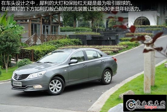 寶駿630在品牌LOGO誕生之前,設計師便將其和前臉造型放在一起設計,于是展現在人們眼前的這臺車才能夠在外部造型上體現得如此之和諧。飽滿而富有活力的車身散發(fā)出低調內斂的韻味,這正符合大部分中國人的購物習慣。在車頭設計之中,犀利的大燈和保險杠無疑是最為吸引眼球的。在前霧燈的下方如利刃般凸起的擾流裝置讓寶駿630更顯年輕活力。
