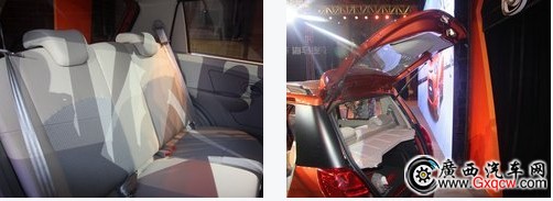 后排座椅的做工和用料同樣達到了很好地效果,采用了雙頭枕設(shè)計,乘員座椅下步有突起,更為適合二人乘坐,最高配的豪華型還提供了座椅按比例放倒,這進一步擴展了海馬愛尚的乘坐空間,整體最大承載空間能達到驚人的1200L。