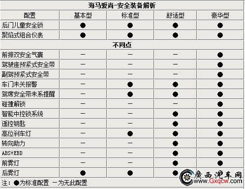 【通過這張配置表 我們更能感覺到這款車型安全裝備匹配】
