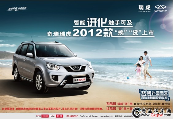 瑞虎2012款上市同時,全國各地奇瑞4S店還將同步推出瑞虎運動型,配備鍍鉻前杠、迎賓側(cè)踏,更加凸顯瑞虎時尚魅力的動感氣息!另外,奇瑞瑞虎全能體驗營第二季之快意之旅活動大幕也即將拉開,讓更多喜愛瑞虎的車友通過自駕游的形式,在欣賞了祖國山水的同時,也感受瑞虎給您帶來的愜意生活。目前各地報名現(xiàn)已開始,詳情請鑫廣達(dá)奇瑞4S店。