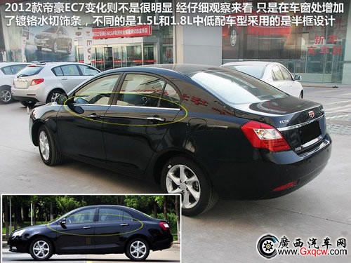 對(duì)于車身側(cè)面,2012款帝豪EC7變化則不是很明顯,經(jīng)仔細(xì)觀察來看,只是在車窗處增加了鍍鉻水切飾條,不同的是1.5L和1.8L中低配車型采用的是半框設(shè)計(jì),而1.8L最高配車型則采用了全框樣式設(shè)計(jì)車型,這也是間接區(qū)分部分車型配置的明顯之處,值得一提的是,帝豪EC7全系車型配備了折疊遙控鑰匙。