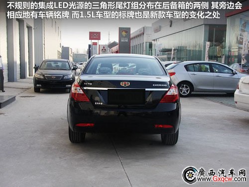 最后我們再來看下新款車型的尾部,因?yàn)樾「目畹木壒,新款車型依然維持了老款車型大氣穩(wěn)重的造型,不規(guī)則的集成LED光源的三角形尾燈組分布在后備箱的兩側(cè) ,其旁邊會(huì)相應(yīng)地有車輛銘牌,而1.5L車型的標(biāo)牌也是新款車型的變化之處。
