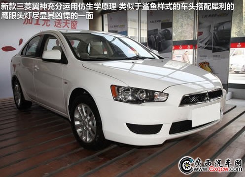 新 款三菱翼神充分運用仿生學原理,類似于鯊魚樣式的車頭搭配犀利的鷹眼頭燈以及兇悍的倒 梯形大嘴威懾力盡顯,尾部簡潔有力的四邊形熏黑組合燈與后備箱蓋上的鍍鉻飾條略顯豪華。前麥佛遜后多連桿式獨立懸掛搭配前后副車架以及復合穩(wěn)定桿設計與 LANCER EVO有著相同的底盤設計,操控性與穩(wěn)定性不言而喻。