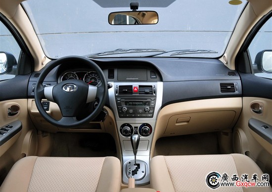 騰翼C30的內(nèi)飾有明顯的家用風(fēng)格。黑色和米色的主色調(diào),搭配銀色的中控面板,給人感覺親切自然。中控臺上銀色面板的質(zhì)感也較為一般。好在做工尚可,模具的邊緣都比較光滑,絕大部分的接縫處也處理的比較細(xì)膩均勻。