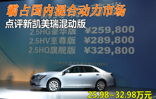 凱美瑞·尊瑞是凱美瑞在國內(nèi)推出的第二代混合動力車型,作為國內(nèi)為數(shù)不多的混動車型,它在技術(shù)層面上完全受到人們和市場的認(rèn)可;但由于其整體價(jià)格定位和國內(nèi)混合動力車型發(fā)展的狀況的因素,上一代混動版凱美瑞的銷量一直沒有大紅大紫。而這回一下子降低了6萬元的新凱美瑞混動版已經(jīng)具備了熱賣的價(jià)格前提,與市面上的混動車型相比到底它的優(yōu)勢在哪,能否熱銷,我們來看一下。