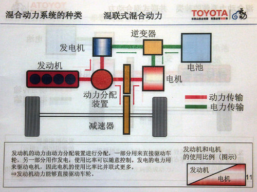 混動版凱美瑞采用的強(qiáng)混方式(混聯(lián)式混合動力),主要特征在于發(fā)動機(jī)動力由動力分配裝置進(jìn)行分配,一部分用來直接驅(qū)動車輪,另一部分用作發(fā)電,因此電機(jī)的使用比率要比并聯(lián)式更多,在油耗控制方面也更加優(yōu)異一些。