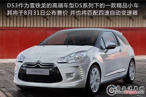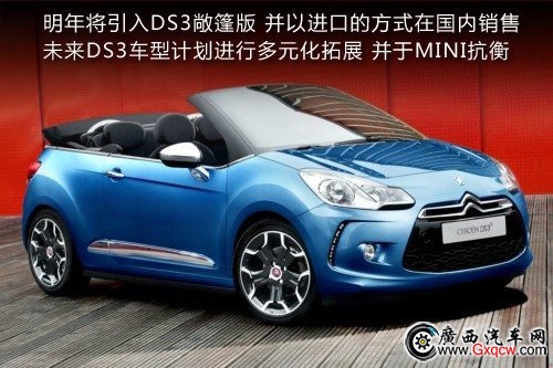 雪鐵龍旗下高端品牌DS在今年6月已將旗下DS4、DS5引入國內(nèi)銷售,讓其成為打開國內(nèi)市場的第一步。為讓國內(nèi)的車型產(chǎn)品線進一步拓展,旗下的精品小車DS3將于8月31日上市。同時計劃未來依托其進行延伸并拓展為一系列多元化車型,其敞篷版也將于明年推出。
