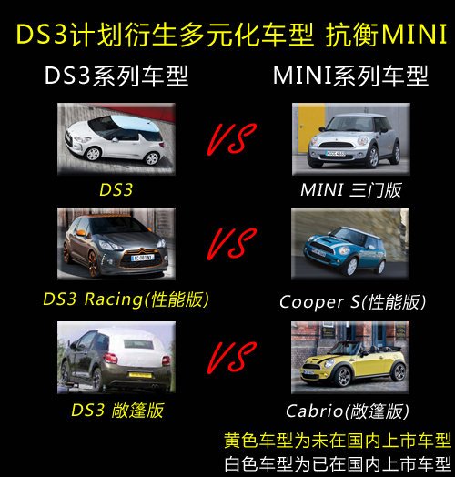 DS3車型作為DS品牌中的精品小車,在歐洲市場有著很大的份額。網(wǎng)通社從DS事業(yè)部內(nèi)部人士處獲悉:明年DS3敞篷版將引入國內(nèi),未來計劃形成如MINI般的多元化車型。DS3敞篷版車型的引入,將進一步延伸DS3車型的產(chǎn)品線,細分了車型的用戶群。同時作為高端品牌DS隨著車型的增多,也將為國內(nèi)的消費者帶來更多的選擇,在全球市場范圍內(nèi)其對抗MINI車型的雖非一朝一夕的事情,但隨著DS3車型的拓展未來憑借其品牌及前瞻性的設(shè)計優(yōu)勢也將對MINI產(chǎn)生極大的影響。