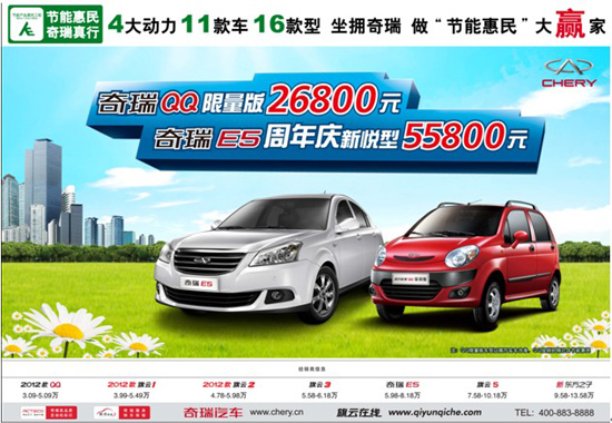 除了此次的雙重鉅惠受到廣大消費者的歡迎外, 2012款QQ也一直以其“高性能、低油耗”的特性受到車主們的好評。特別是2012款QQ搭載了奇瑞研發(fā)的新一代節(jié)能發(fā)動機,百公里綜合油耗最低僅為4.9L,大大降低了消費者的養(yǎng)車費用。2012款QQ的發(fā)動機進行了全新調(diào)教,最大功率達到51kw,節(jié)油的同時也提高了消費者的駕駛樂趣,遙遙領(lǐng)先同級產(chǎn)品,實現(xiàn)了駕控樂趣和燃油經(jīng)濟性的完美平衡。