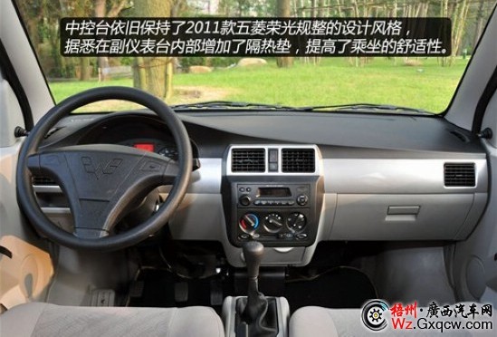 五菱榮光采用轎車一體化的中控臺設(shè)計風(fēng)格,上深下淺的顏色搭配,中間配以銀灰色烤漆面板裝飾,為車廂增營造了溫馨氛圍。三輻式的方向盤在視覺效果上給人一種很強的力量感,手握上去感覺很扎實、厚重, 大大改善了用戶的駕駛感受,讓司機擁有更輕松的駕車心態(tài)。儀表盤的設(shè)計非常簡潔,黑底白字的表盤設(shè)計讀取數(shù)值很方便。簡潔的儀表盤中間設(shè)計了一塊橘色背光的顯示屏,其中油量表、水溫表和時鐘都通過它來顯示,較傳統(tǒng)的指針表更具科技感。