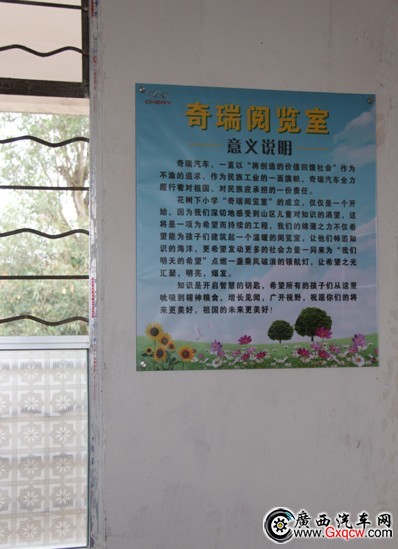 本次護花助學(xué)活動,在廣東全省設(shè)立近30個募捐點,活動前期招募開展之后,收到了來至社會各界的響應(yīng)和支持,不斷收到眾多愛心人士送來的捐贈物資。通過本次活動,幫助學(xué)校建立了圖書閱覽室,為孩子們送來了溫暖的精神食糧。并送來學(xué)校最需要的學(xué)生學(xué)習(xí)生活用品,學(xué)生體育用品等,豐富了孩子們的業(yè)余生活。奇瑞汽車華南大區(qū)經(jīng)理告訴我們:“從2012年12月開始,奇瑞華南區(qū)各經(jīng)銷商將陸續(xù)開展類似助學(xué)活動,并將長期堅持開展,為廣大的山區(qū)孩子們持續(xù)不斷的送來溫暖”。本次活動設(shè)立的圖書閱覽室后期將由奇瑞汽車華南愛心基金長期維護。